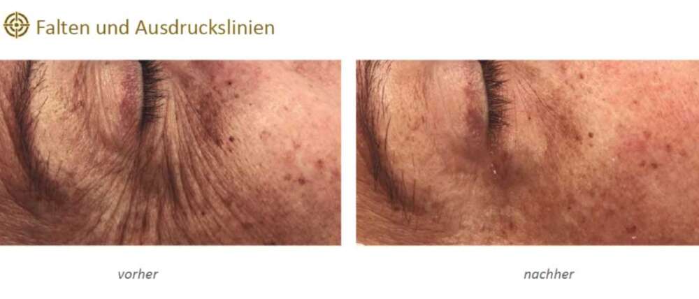Behandelt werden Augenringe, Tränensäcke, Falten und Ausdruckslinien und Pigmentflecken rund um die sehr empfindliche Augenzone mit einem genau abgestimmten Wirkungskonzept.